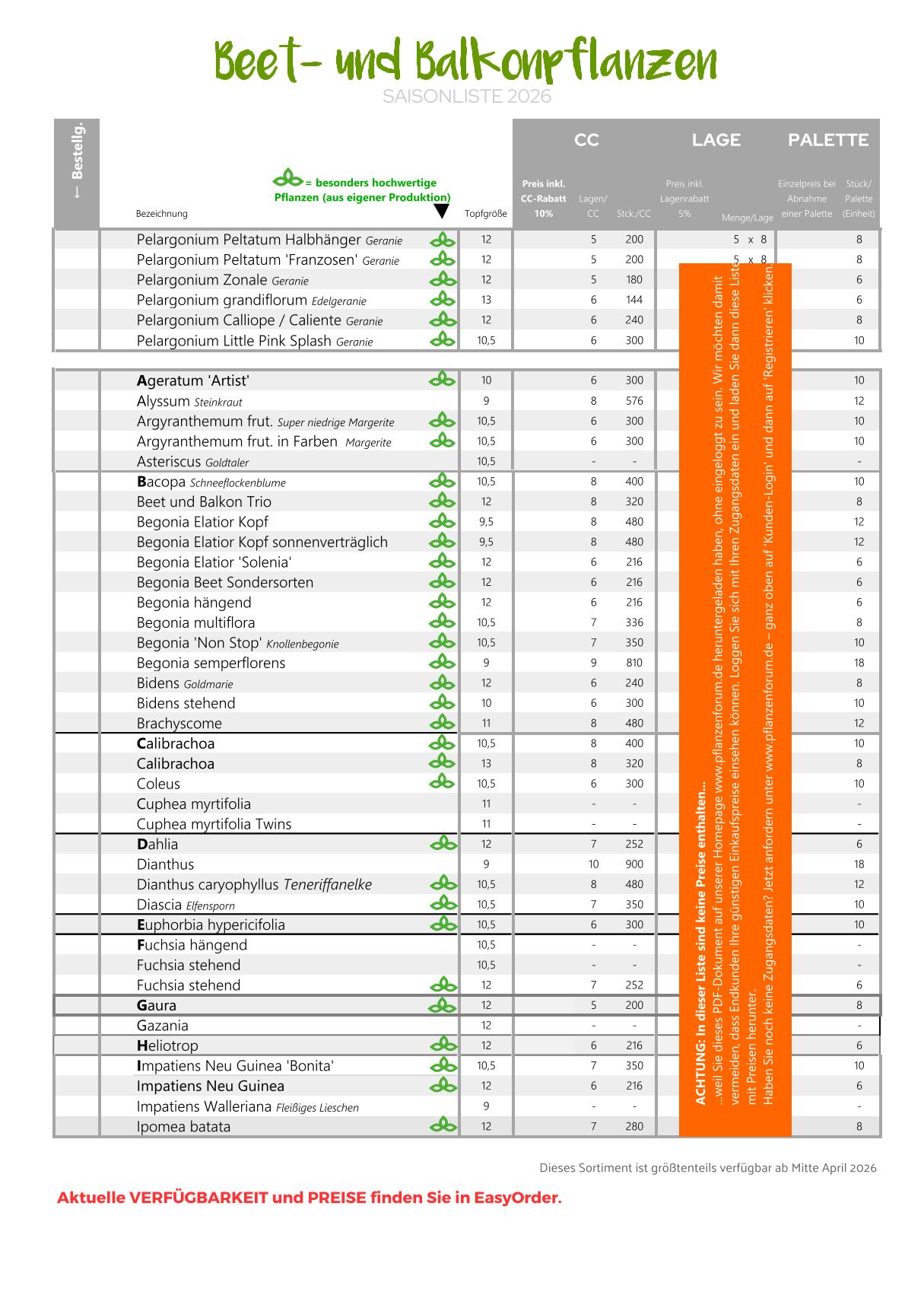 - Container-Rabatt: 10% (bei Topfpflanzen)